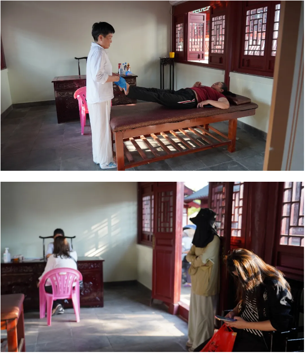 除了问诊开方,现场还设置了针灸、艾灸、推拿、拔罐等特色诊疗项目,