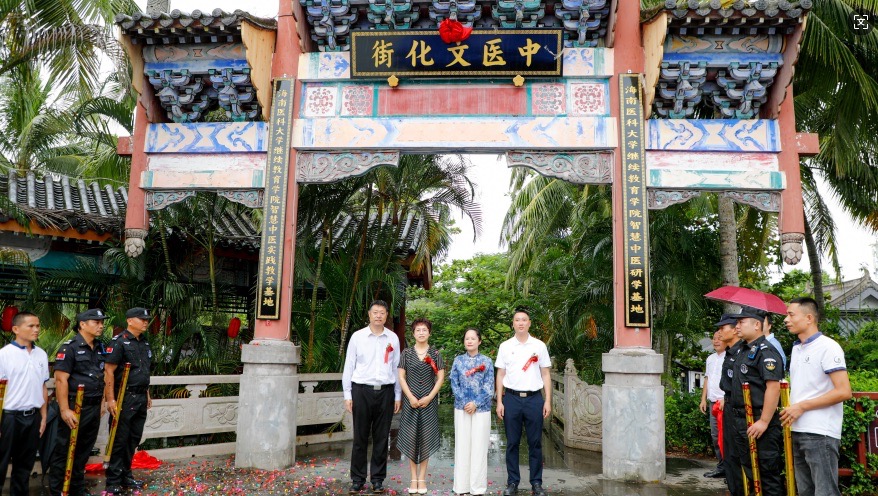 海南医科大学第四联合党委书记、继续教育学院院长常彩红;定安县人民政府副县长符攀婵;定安县旅游和文化广电体育局局长陈军;共同来到海南省定安县文笔峰盘古文化旅游区,海南中野旅游产业发展有限公司总经理沈嘉辉及公司领导班子对其表示热烈的欢迎,并成功的举行了“海南医科大学继续教育学院智慧中医研学基地”与“智慧中医实践教学基地”揭牌仪式。